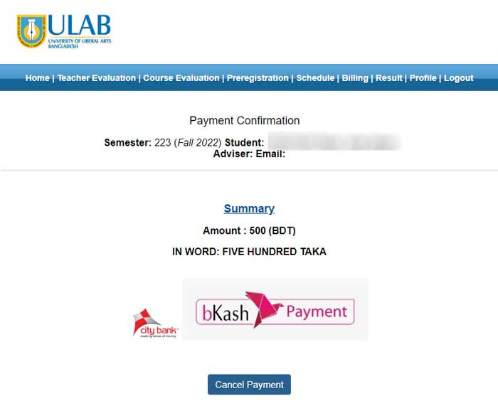 Pay your outstanding tuition fees through online banking or bKash. In order to make the payment procedure convenient for you following guidelines are given: